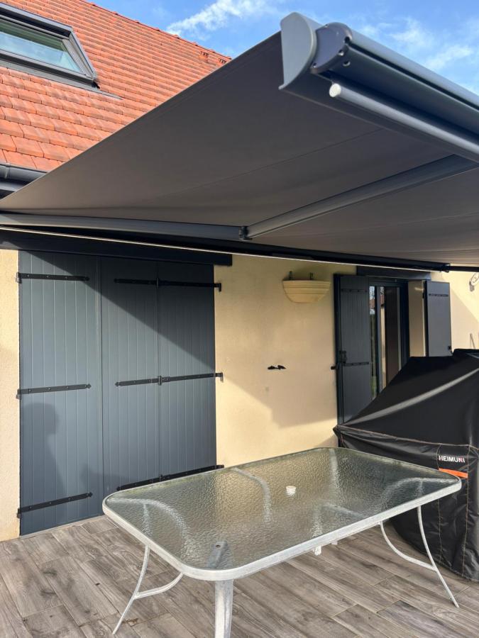 Nouvelle réalisation AFC : installation d'un store banne Balnéa Storistes de France dans le Calvados, alliant protection solaire performante et design contemporain.