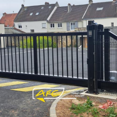 Nos équipes AFC ont récemment réalisé l’installation d’un portail coulissant en acier thermolaqué modèle Ulys, conçu par le fabricant Portalis, accompagné de sa motorisation REV par notre fournisseur DEA. Ce projet avait pour objectif de sécuriser efficacement l’accès à un site professionnel tout en garantissant un fonctionnement fluide et durable.
