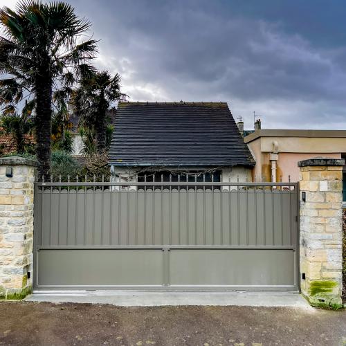 Les propriétaires souhaitaient rénover leur entrée et faciliter le stationnement de leur véhicule grâce à une ouverture à distance. Leur choix s’est porté sur un portail SIB en aluminium de la gamme Tradition.