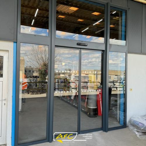 En mars dernier, l’une de nos équipes est intervenue sur ce bâtiment professionnel en effectuant la pose d'une façade aluminium intégrant une porte automatique piétonnes 2 vantaux.