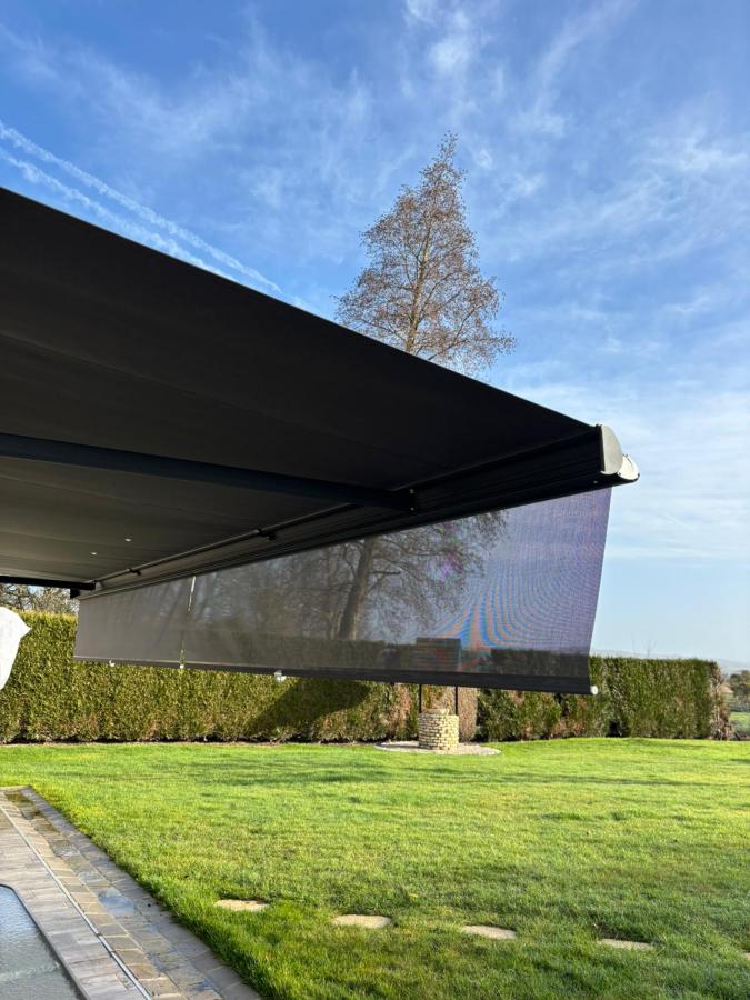 L'un des atouts majeurs de cette installation réside dans son lambrequin Modul'ombre. Contrairement aux lambrequins fixes traditionnels, ce système enroulable offre une flexibilité incomparable pour se protéger du soleil couchant en fin de journée.